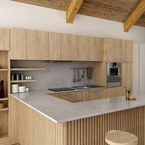 Lấy cảm hứng từ đá cẩm thạch tự nhiên, sản phẩm Vicostone Valley White độc đáo với hiệu ứng vân rối màu tối xuất tiện trên bề mặt nền trắng tinh tế